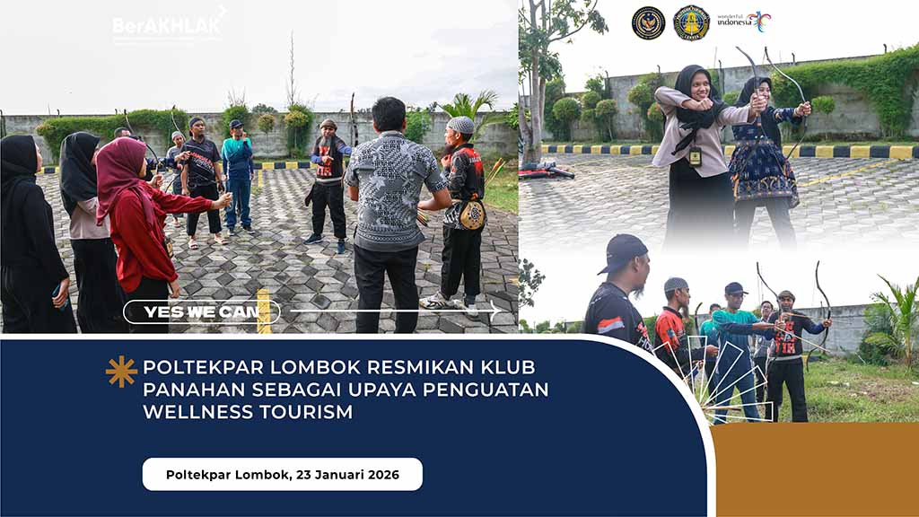 Politeknik Pariwisata Lombok secara resmi meresmikan Klub Panahan sebagai bagian dari komitmen institusi dalam mendukung pengembangan konsep wellness tourism pada 23 Januari 2026. Kegiatan peresmian ini menjadi salah satu upaya strategis kampus dalam mendorong penerapan gaya hidup sehat di lingkungan pendidikan pariwisata. Klub Panahan dihadirkan sebagai wadah pengembangan minat dan bakat olahraga yang terbuka bagi mahasiswa dan pegawai. Inisiatif ini juga mencerminkan perhatian institusi terhadap keseimbangan antara kesehatan fisik dan mental sivitas akademika. Dengan demikian, Poltekpar Lombok berupaya membangun ekosistem kampus yang sehat dan berkelanjutan.